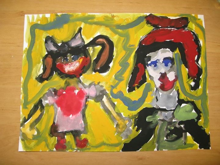 היצירה הבאה צוירה ע"י ילדה עם אוטיזם, שבגלל מגבלת השפה (אני לא דוברת מנדרינית) וגם בגלל החרדה שאחזה בה למראה אישה זרה, לא הצליחה להמליל את רגשותיה.